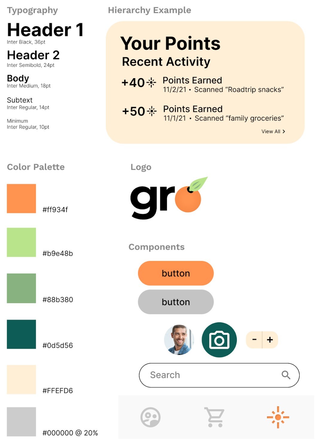 Before committing to a high-fidelity design, we defined the visual direction for Gro. We aligned on a modern, energetic aesthetic inspired by nature, guiding our choices in color, typography, and overall mood.