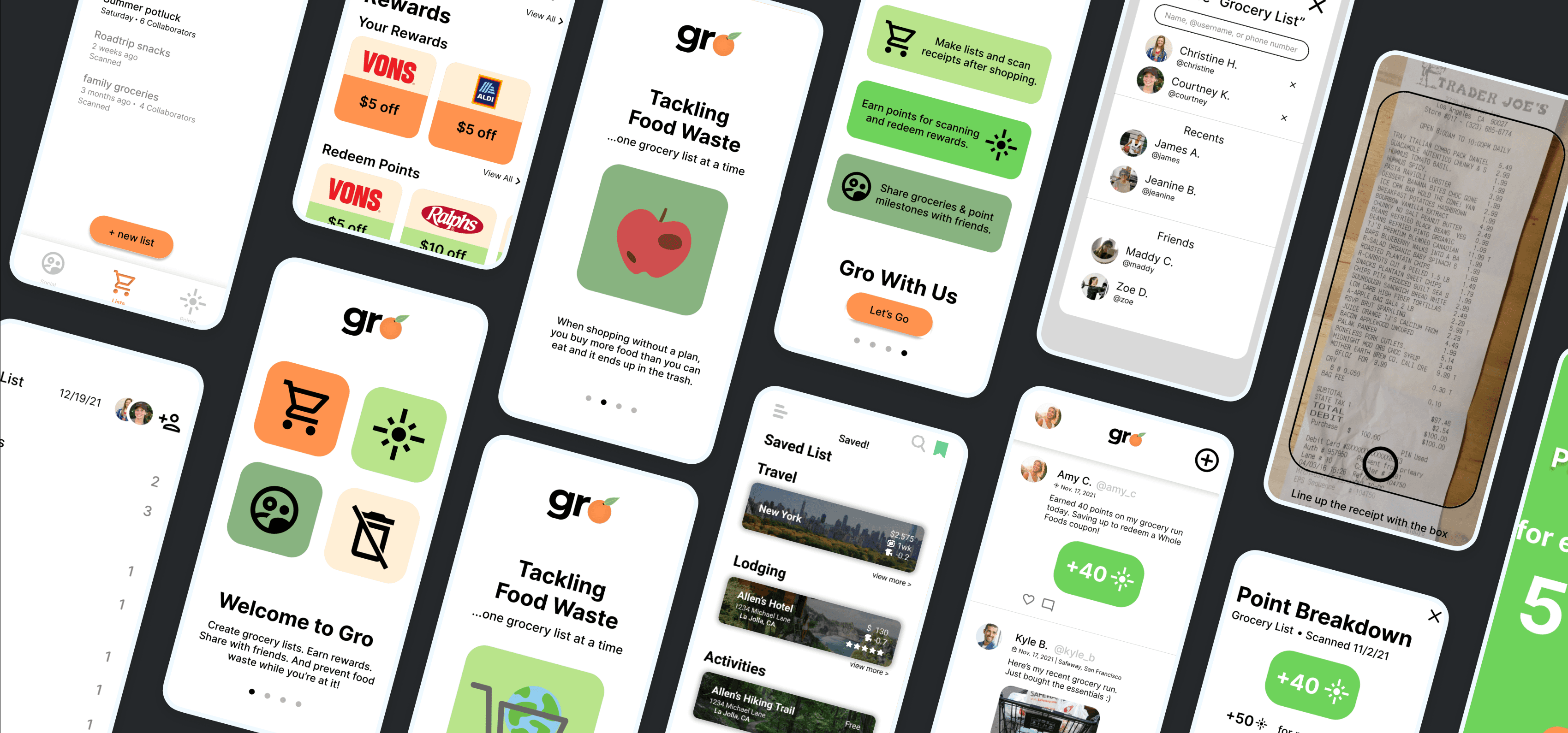 Gro was developed through a design studio at UC San Diego, where my team and I focused on the consumer level, where planning, behavior, and decision-making most directly influence waste. Motivated by a shared passion for sustainability, we set out to design a tool that empowers people to make intentional food choices that benefit both the planet and their wallets.