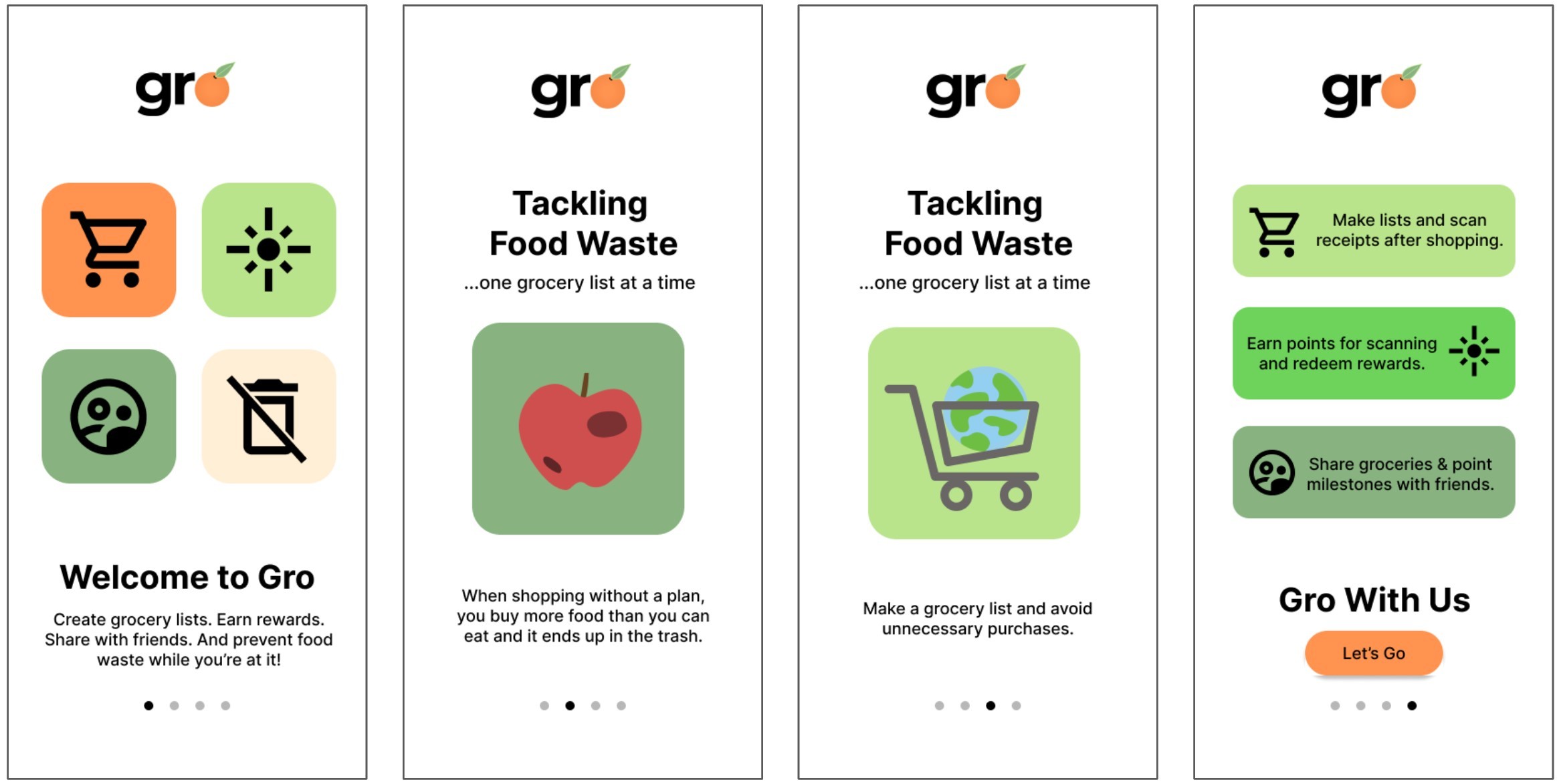 The Gro app demonstrated a simple but powerful idea: helping users plan intentionally can meaningfully reduce household food waste. Through research, design, and testing, we created a concept that users found intuitive, motivating, and relevant to real grocery habits. Our goal was to empower people to make sustainable choices that save time, money, and resources, and Gro showed that these benefits can coexist in a single, thoughtful experience.