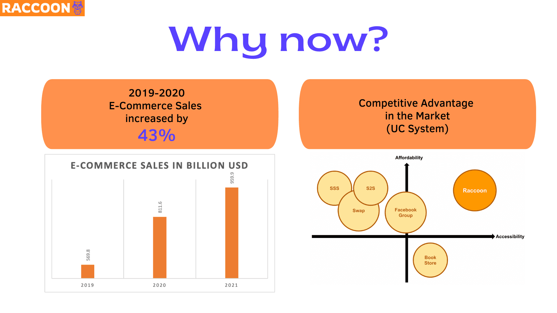 Clear competitive whitespace: Raccoon offered greater affordability and accessibility compared to FB groups, SSS, and campus bookstores