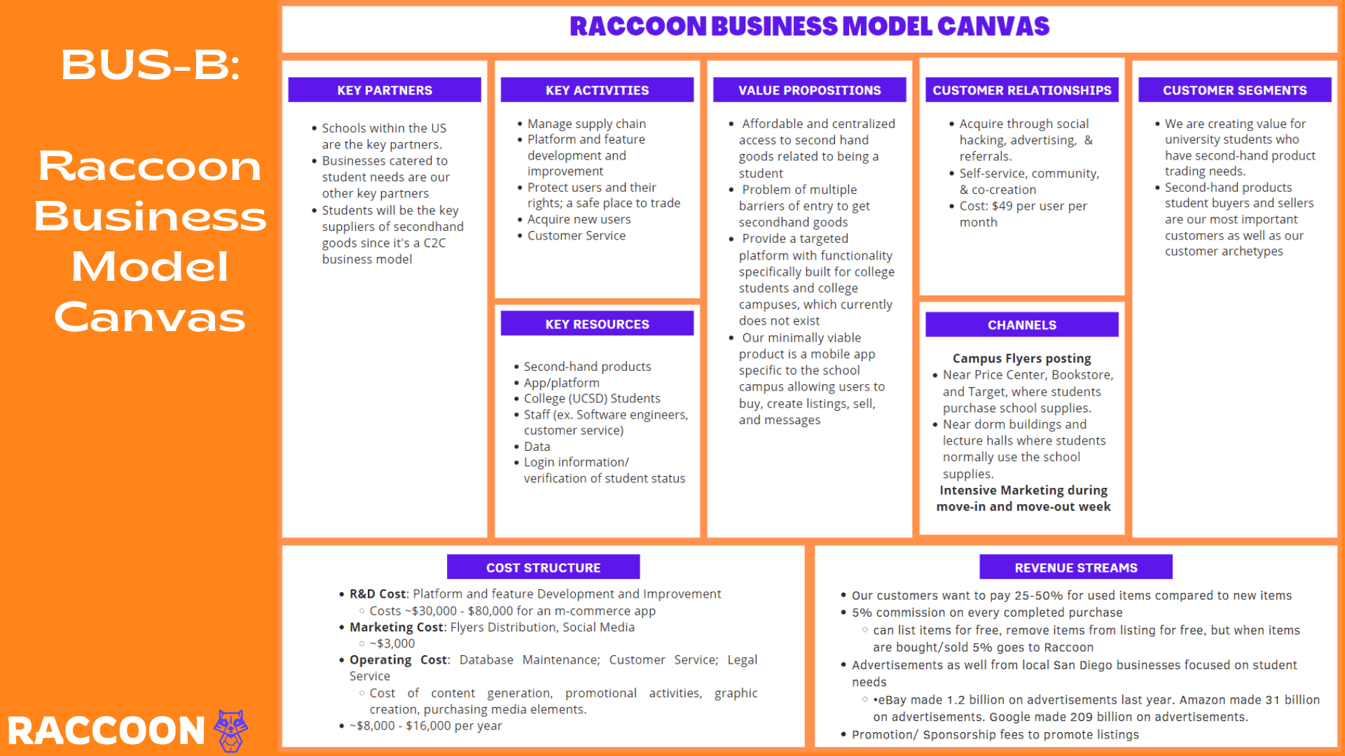 Created the architectural strategy outlining how Raccoon creates and controls a new value chain in student secondhand goods.